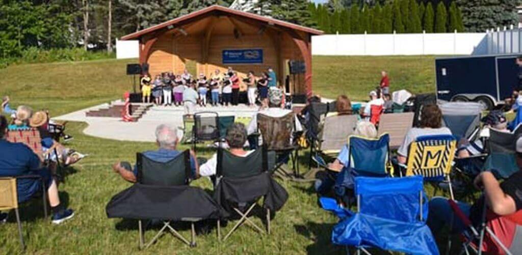 Tom Turek, MC welcomed the crowd and invited all to assemble around the Amphitheater to begin the dedication of the McClintock Park Amphitheater. First on the program was Laingsburg Community Singers. Turek introduced Steven Easterling, LCS Music Director and Director of the Laingsburg Community Singers.