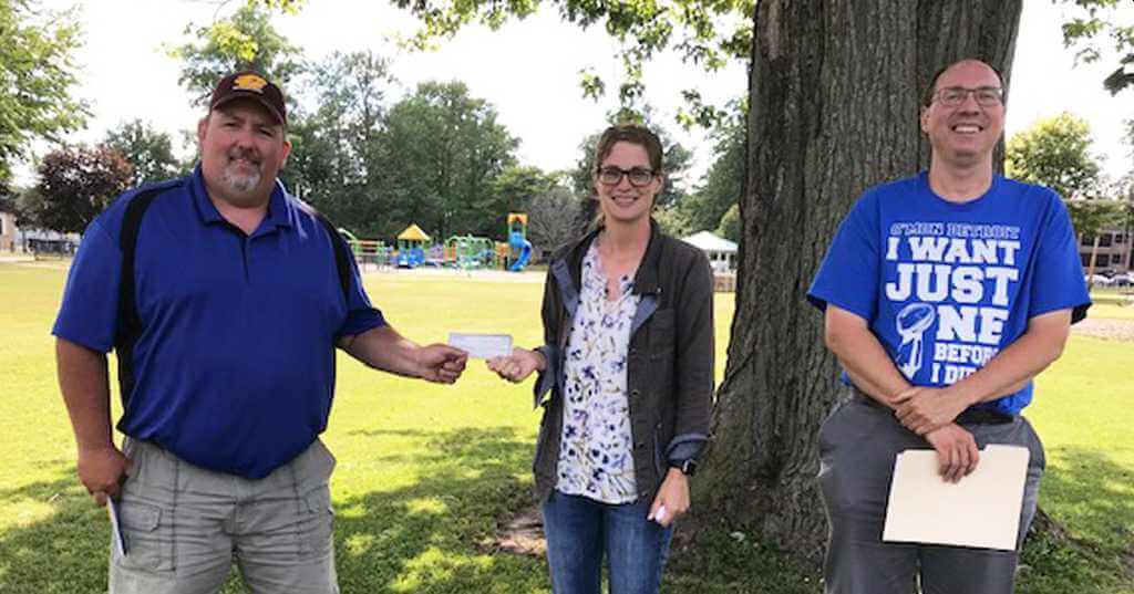 Ed Fornusek and Joe Smolka presented donations to United Way representative, Eli Hall, for the annual Stuff the Bus Project. Every Elementary school classroom in Gratiot and Isabella county receives this support for needed supplies. Money was donated by the lodge, by individual members, by the Elba Sunshine Club and St. Cyril’s Knights of Columbus. Eli stated that the United Way organization was especially grateful for our large donation this year because, due to COVID 19, many of their regular donors were not able to con- tribute.